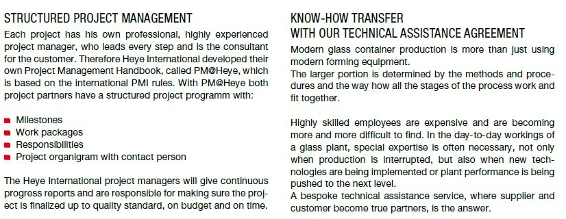 from Heye International and our long-standing know-how, covering all project stages and processes with our large pool of