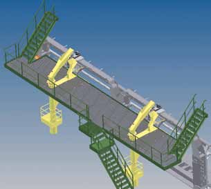 *熱端整體布局 *玻璃回收漏斗和廢料槽 *中間平臺帶階梯